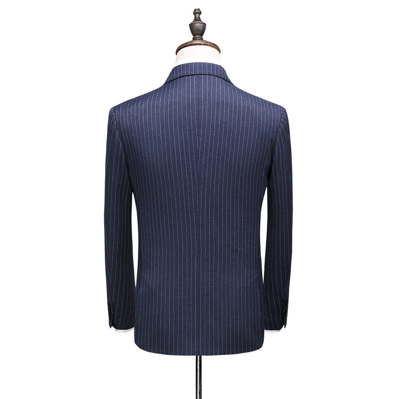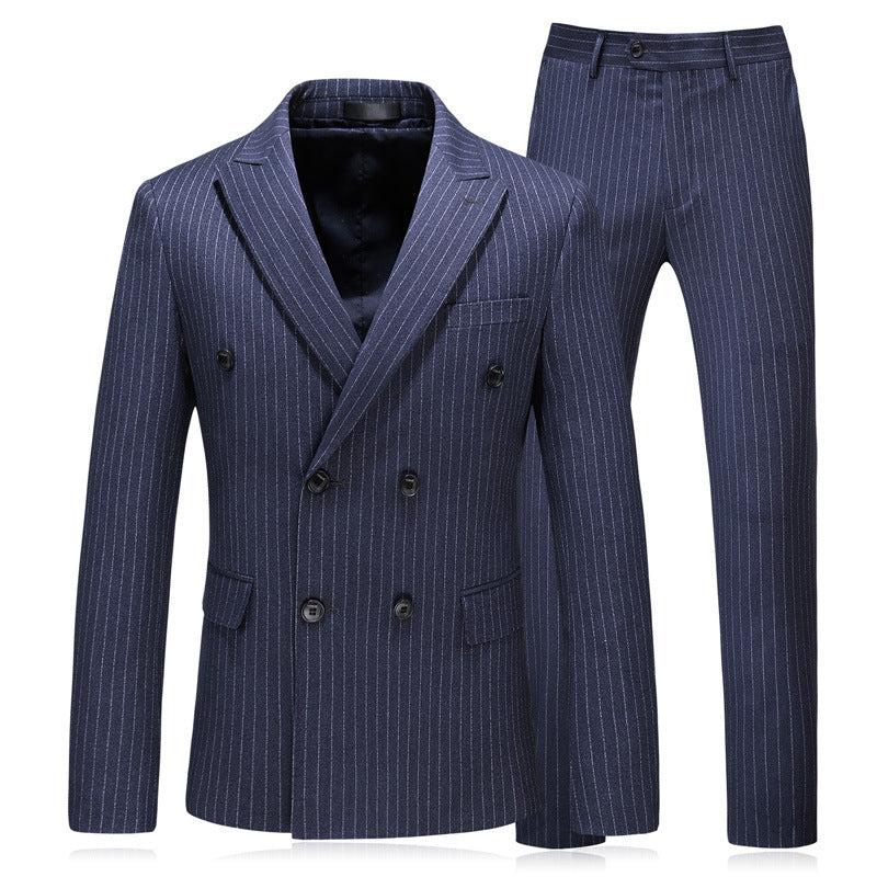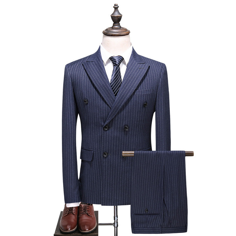 Premium Men's Double-Breasted Striped Three-Piece Suit | Gray Blue | Extended Sizes | Luxury | Shop Bam