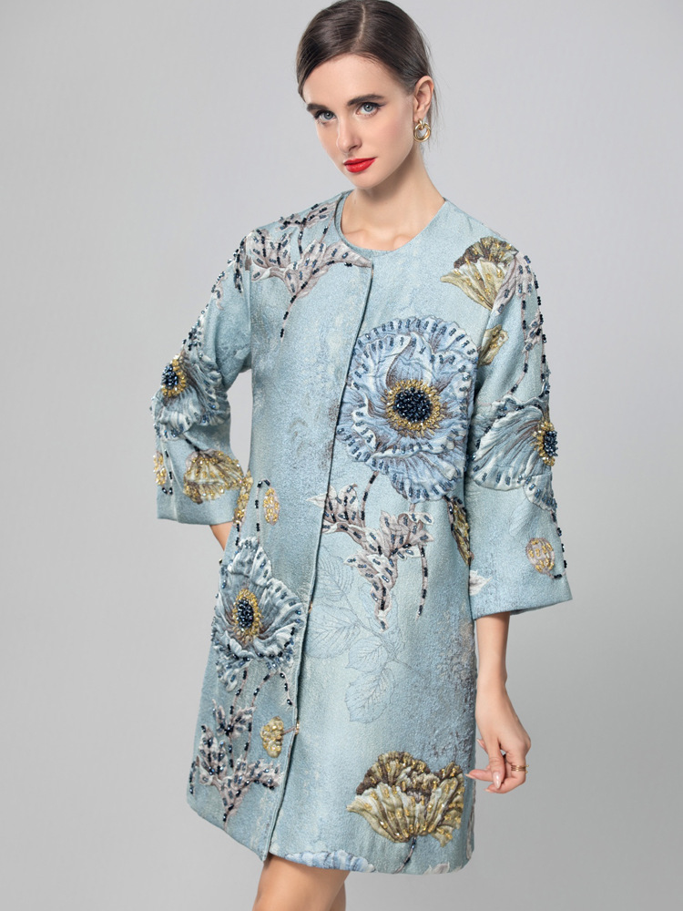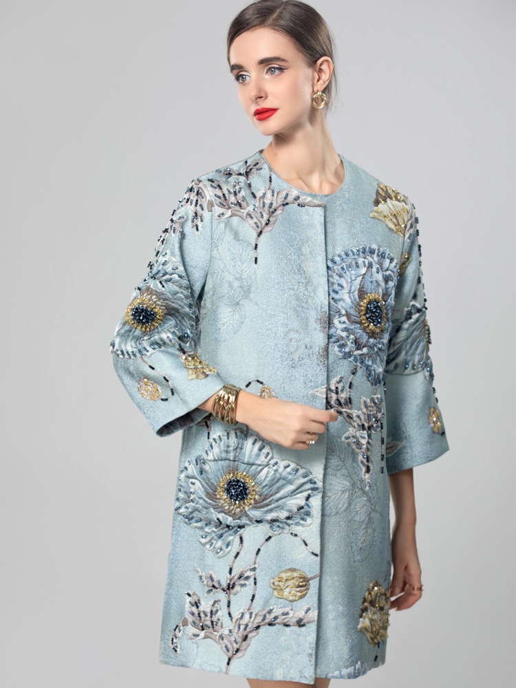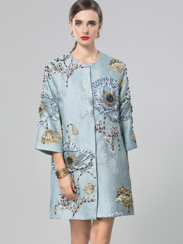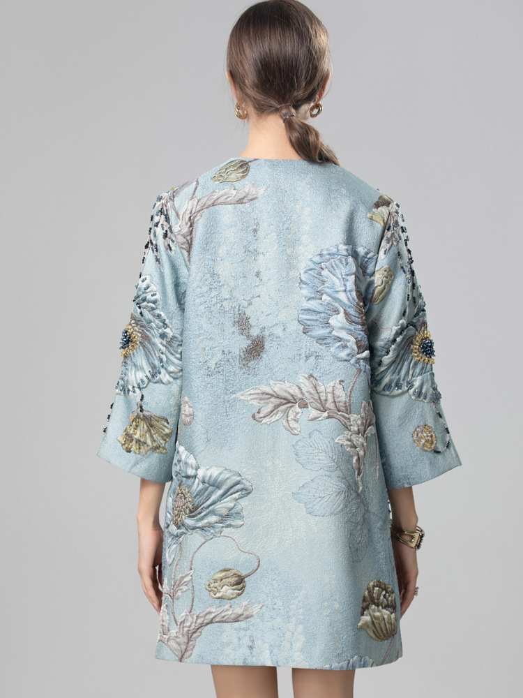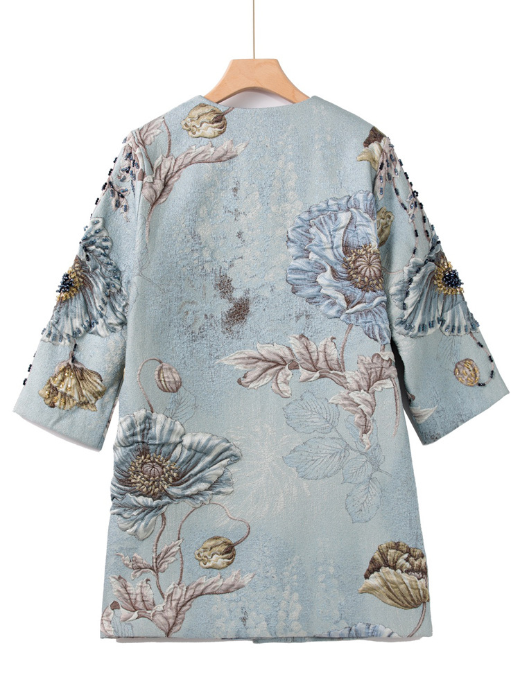 Premium Asian Inspired 3/4 Sleeve Blue Coat Top | Beaded | Floral Pattern | Luxury | Shop Bam
