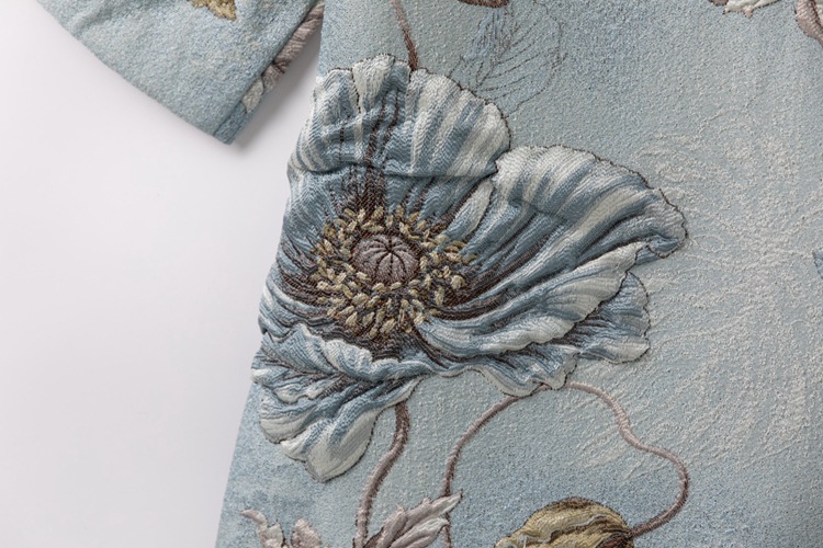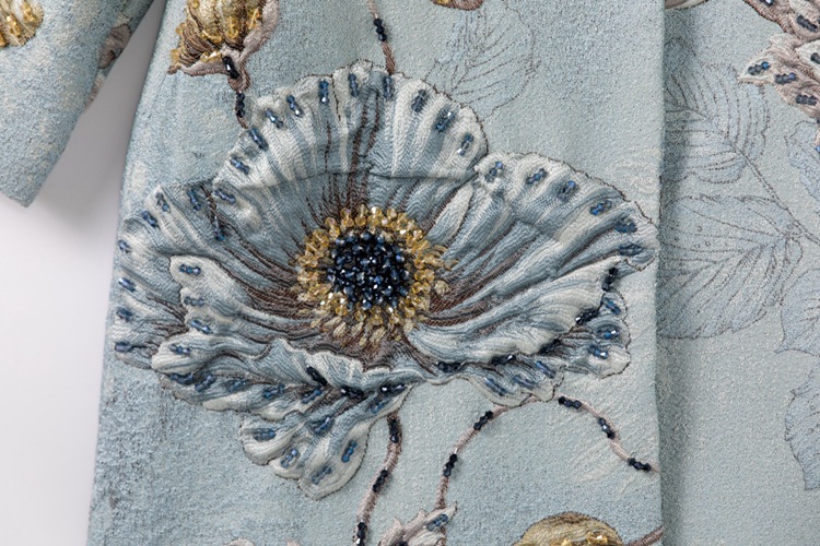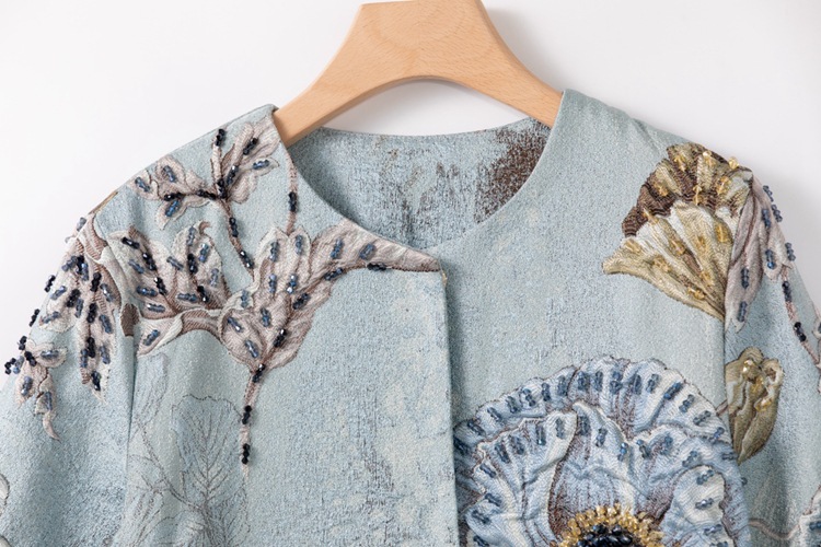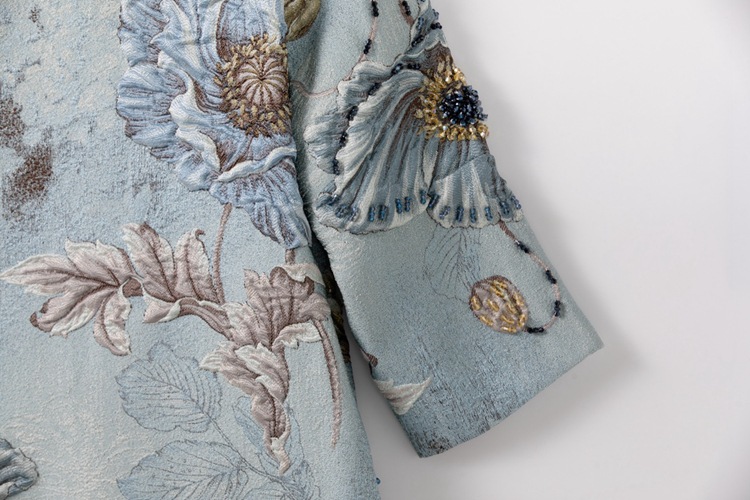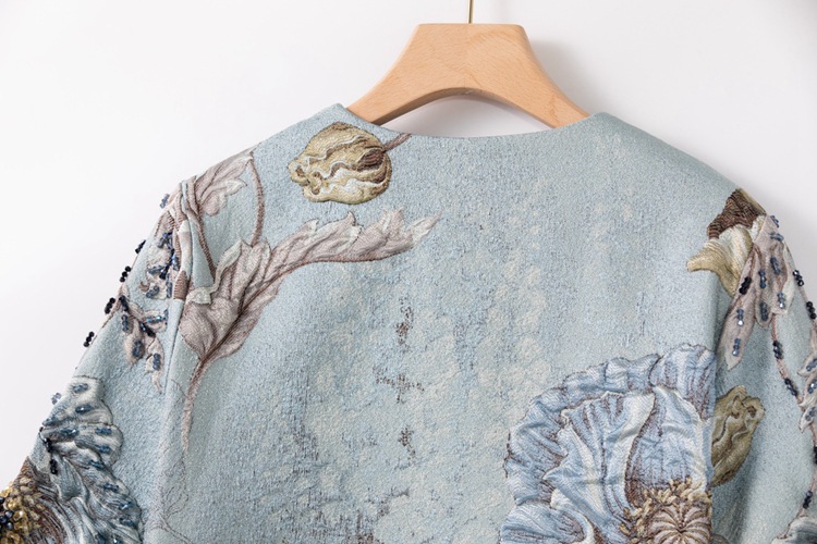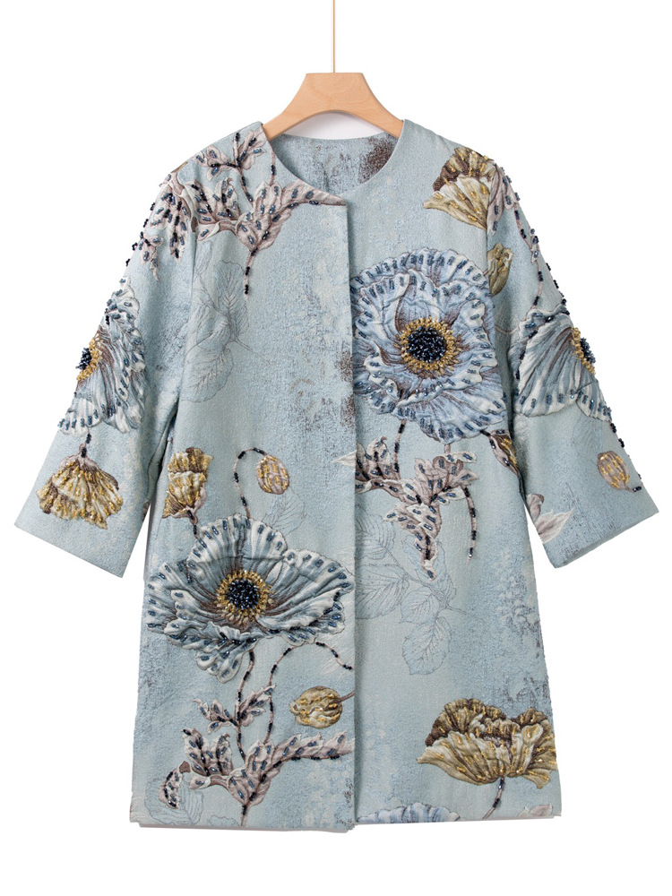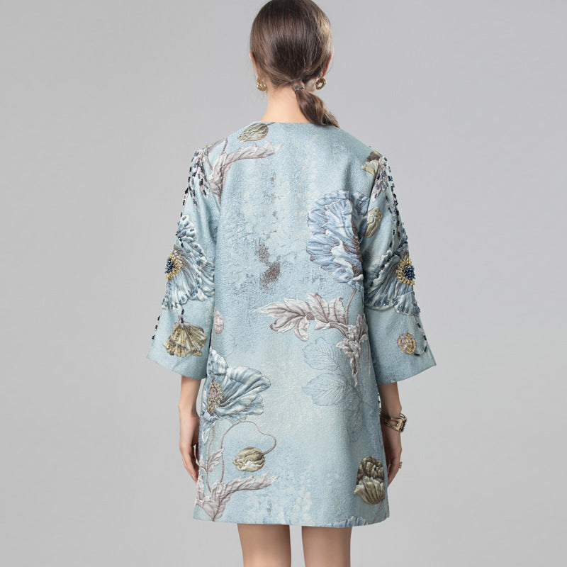 Premium Asian Inspired 3/4 Sleeve Blue Coat Top | Beaded | Floral Pattern | Luxury | Shop Bam