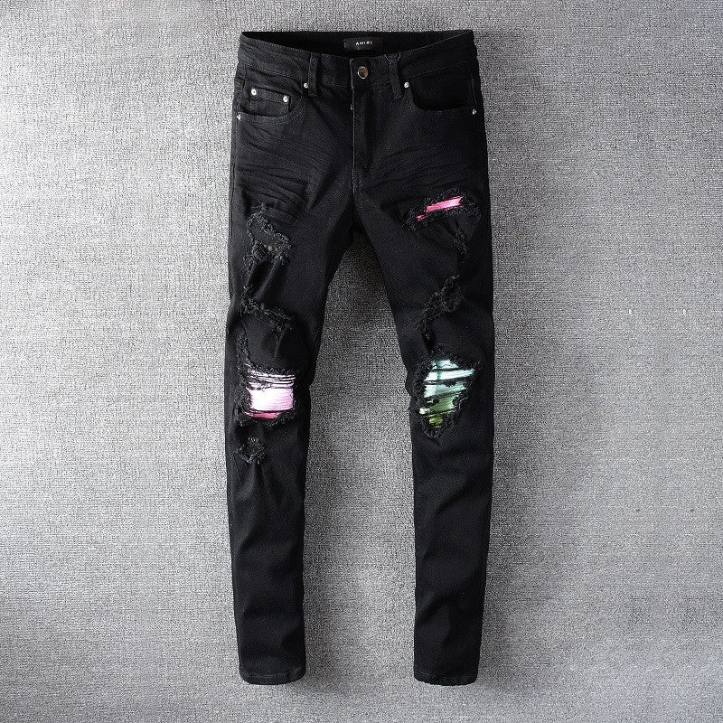 Ultra-Slim Stretch Denim with Ripped Patch Details