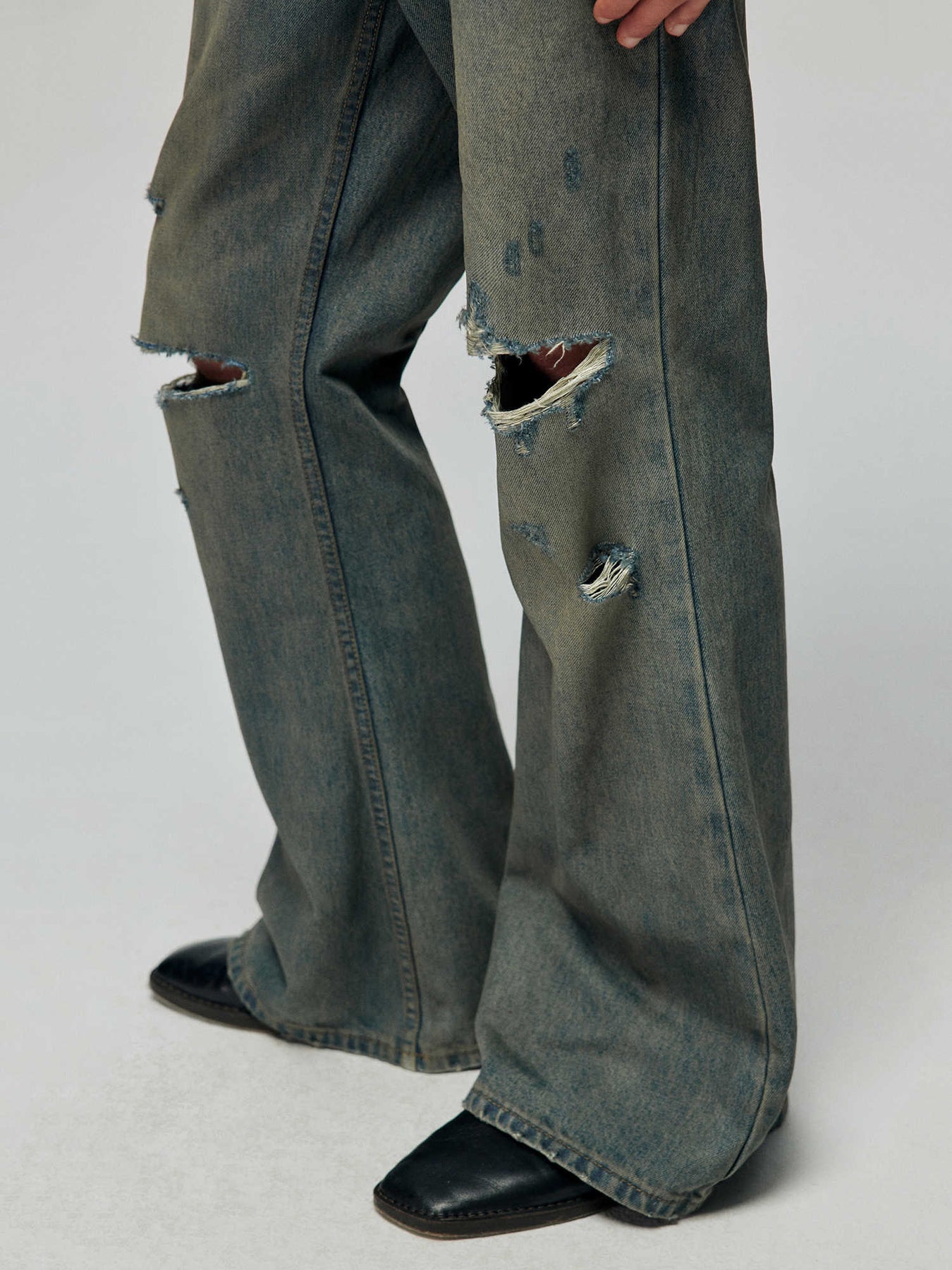 Crafted from premium 100% cotton denim with no stretch for authentic vintage feel. The loose micro-flared cut with retro ripped details creates a classic 70s-inspired aesthetic.