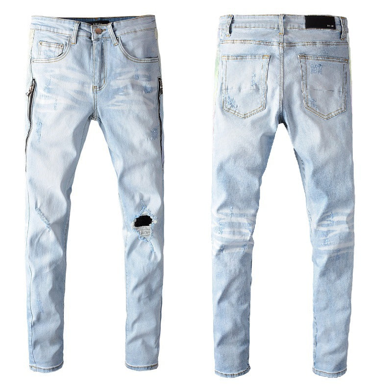 Complete your high street wardrobe with the SHOP BAM High Street Fashion Denim. These premium jeans feature strategic hole detailing in a versatile washed blue finish. The slim-fit silhouette and contemporary styling make these a must-have for the fashion-conscious individual.