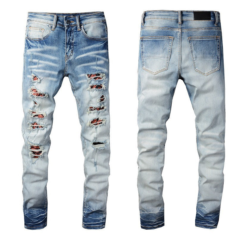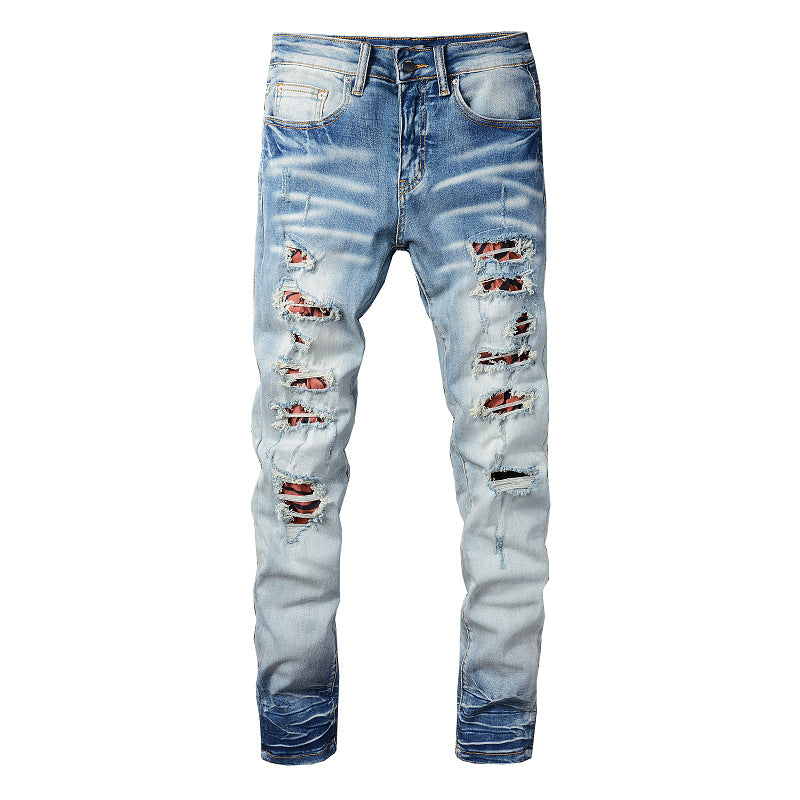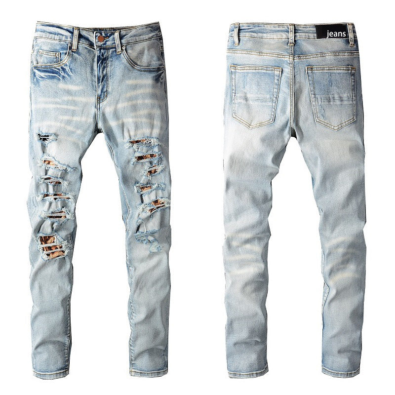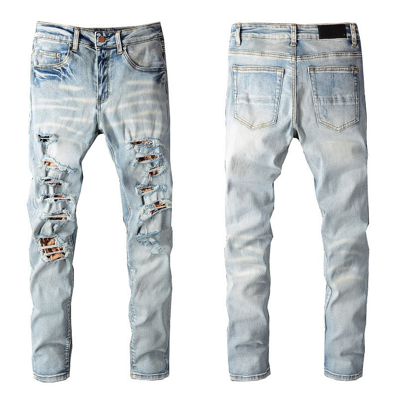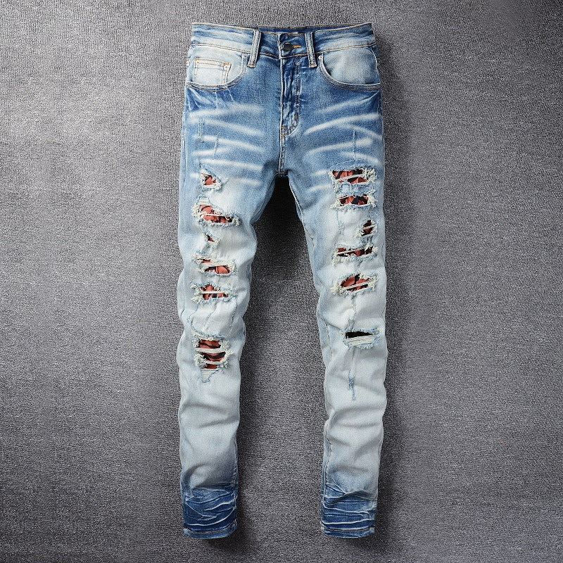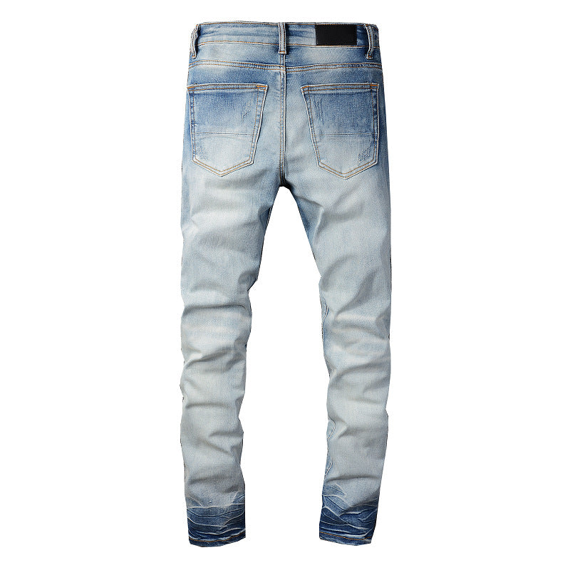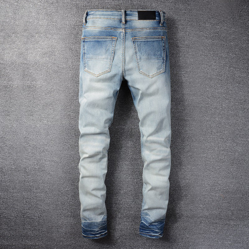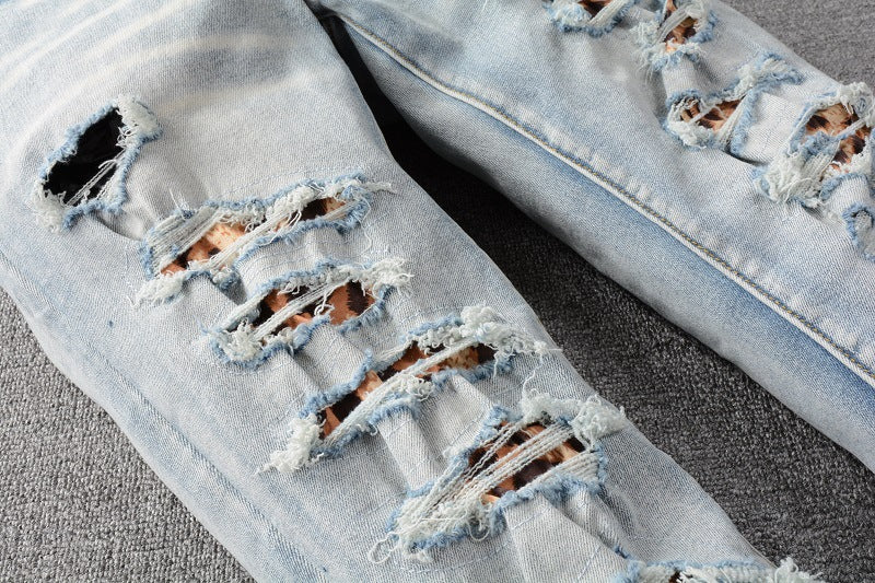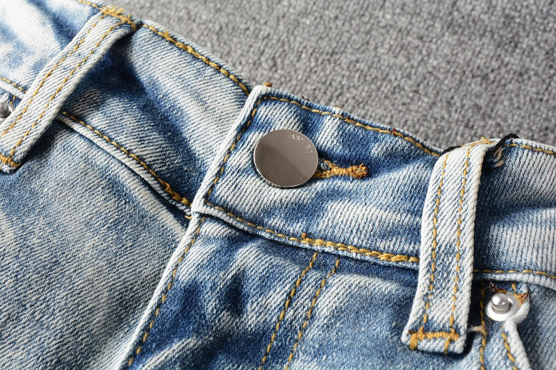 Light Blue Distressed Denim with Patch Details
