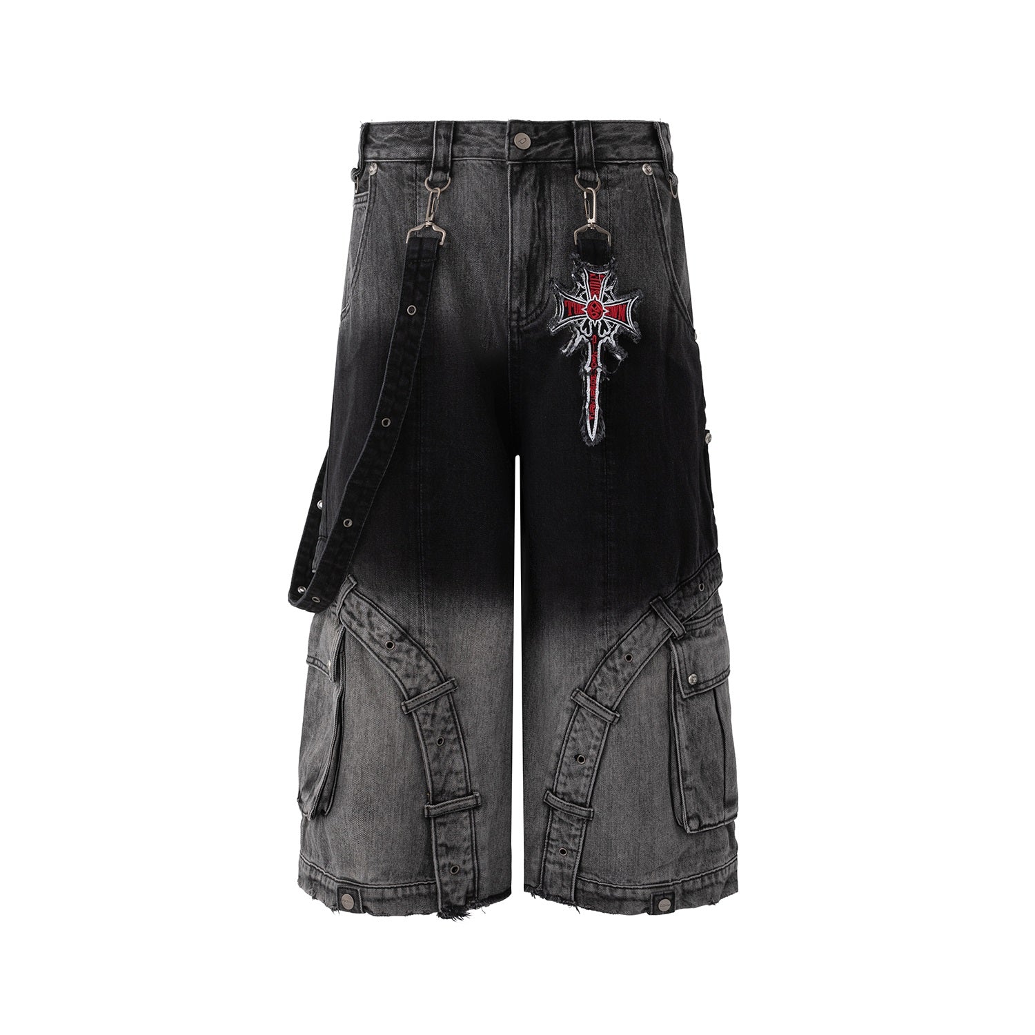 Crafted from a breathable cotton-polyester blend with heavy-duty washing. The straight-leg cut with mid-waist rise offers a classic fit, while the patchwork and gradient details add unique retro character.