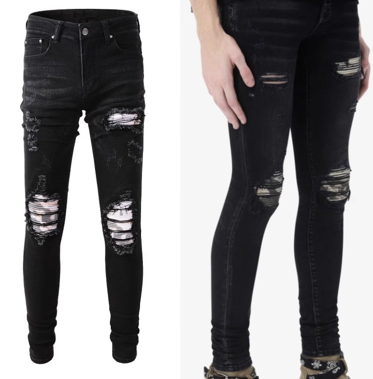 Discover refined style with the SHOP BAM Printed Pleated Patch Denim. These premium jeans feature sophisticated print details combined with intricate pleated patches, creating a unique textural aesthetic. The classic blue wash ensures versatile wearability.