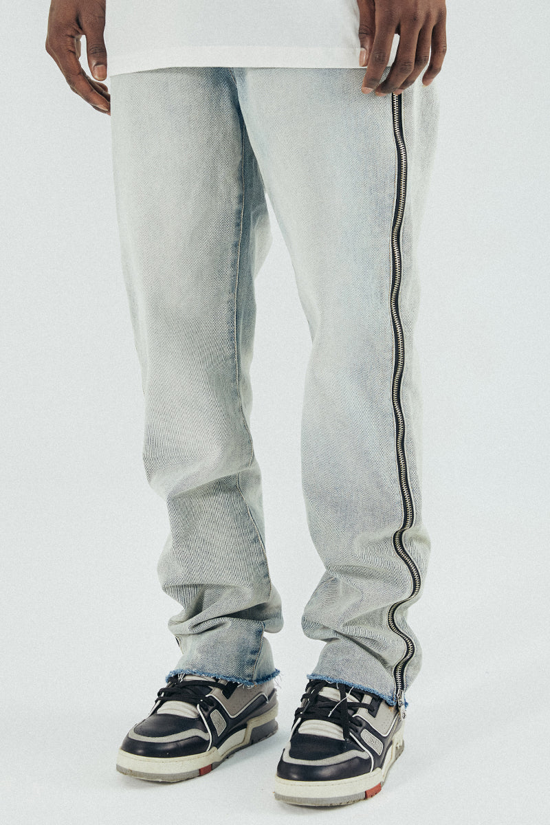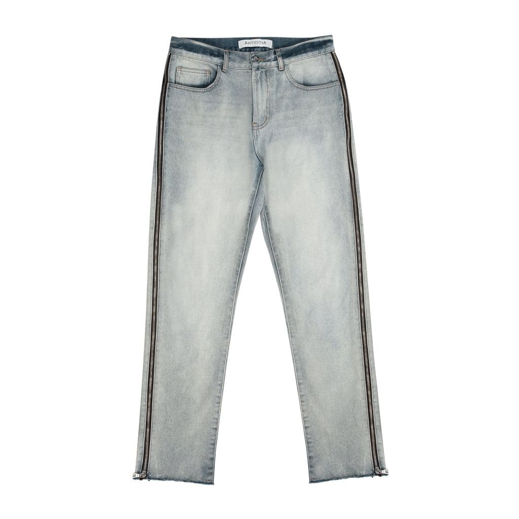 Raw Edge Side Bone Zipper Straight Denim