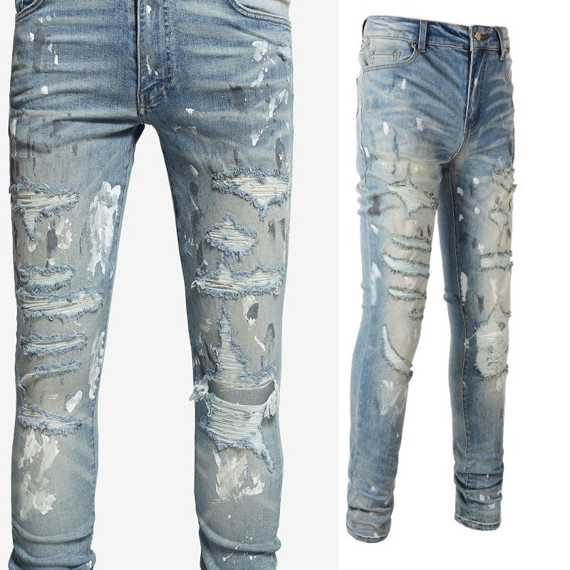 Crafted from premium stretch cotton denim with an authentic vintage wash. The slim-fit design with stretch fabric offers comfort and style, while the graffiti details add urban artistic flair.