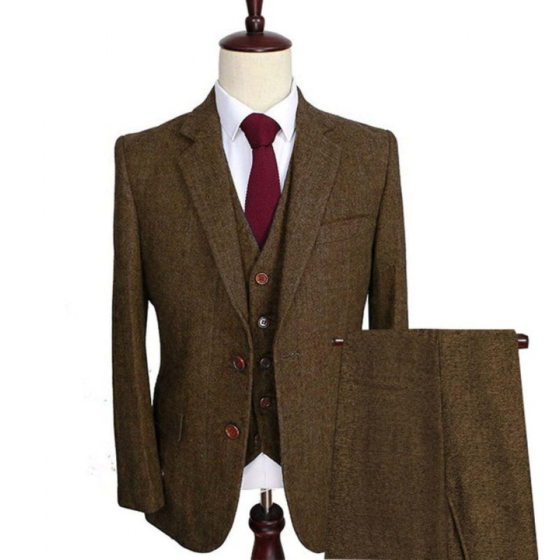 Premium Men's Wool Tweed Formal Lapel Suit | Luxury | Shop Bam