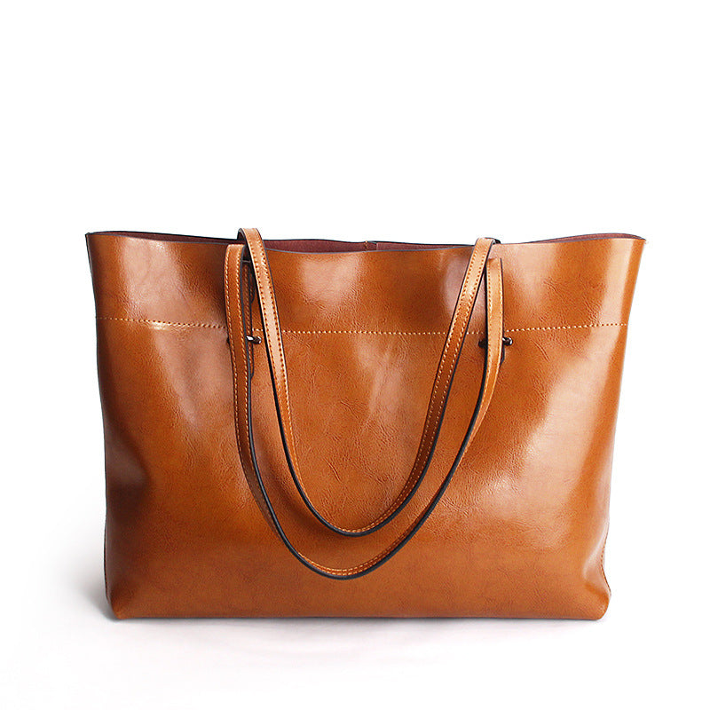 Discover vintage luxury with this oil-wax leather tote—where European retro style meets modern versatility.