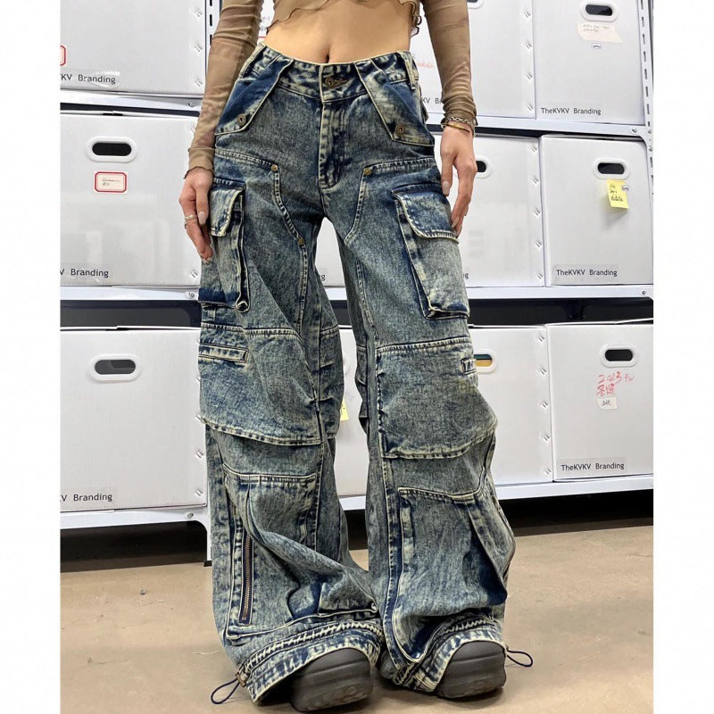 SHOP BAM American Street Plus Size Multi-Pocket Workwear Jeans - Women's Luxury Designer Denim