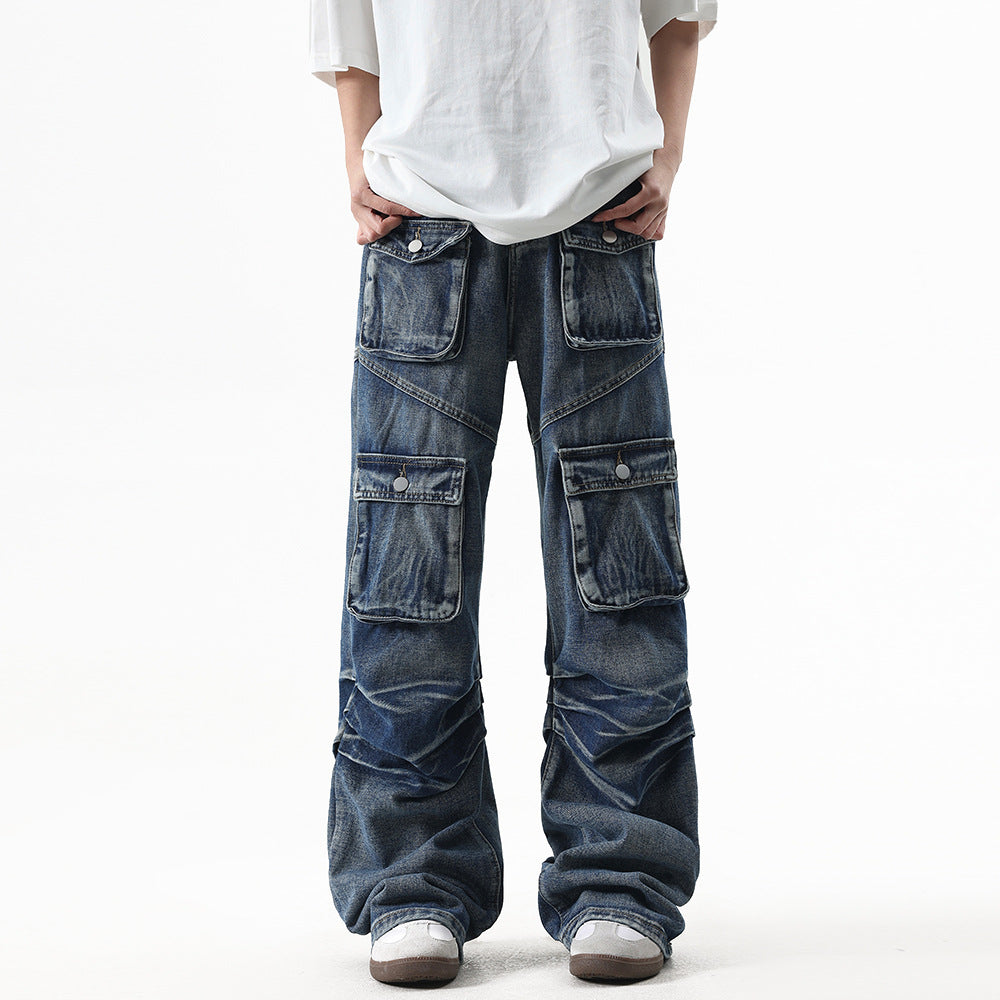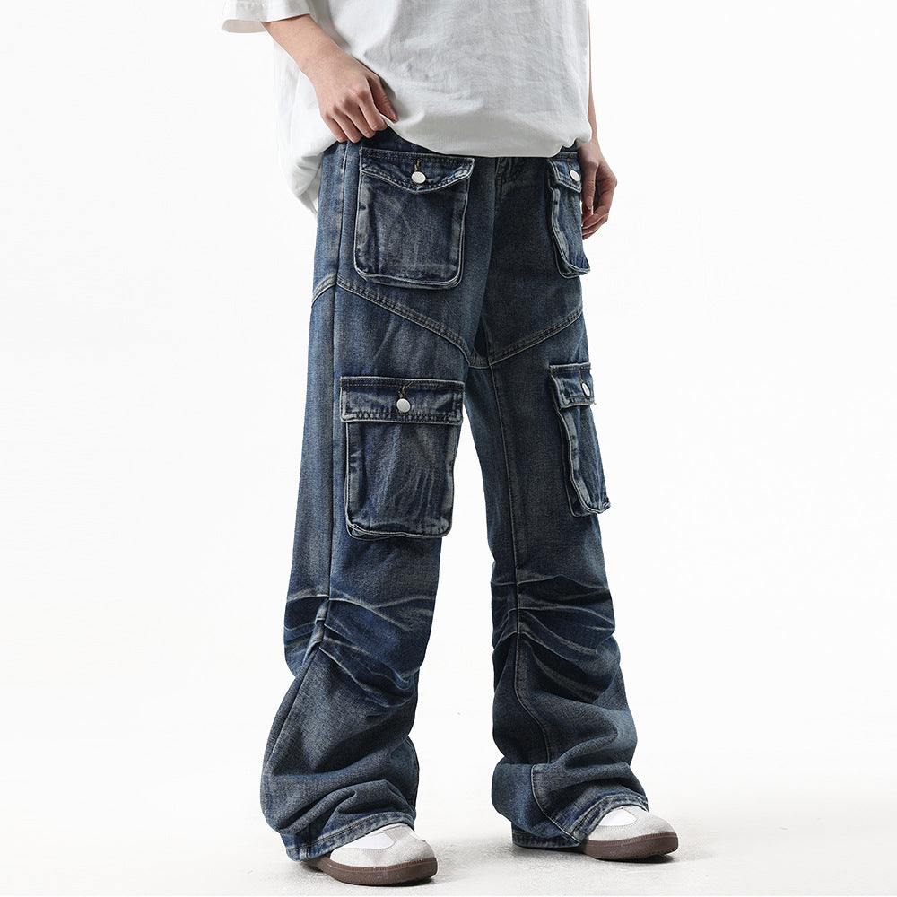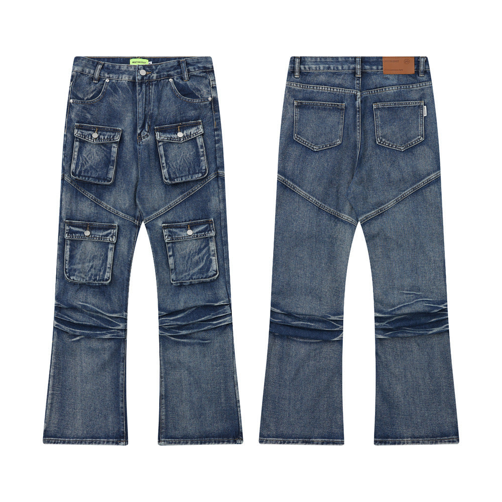 These premium multi-pocket workwear jeans feature functional pocket detailing and utility-inspired design. The multi-pocket construction creates practical appeal while workwear styling adds contemporary edge.