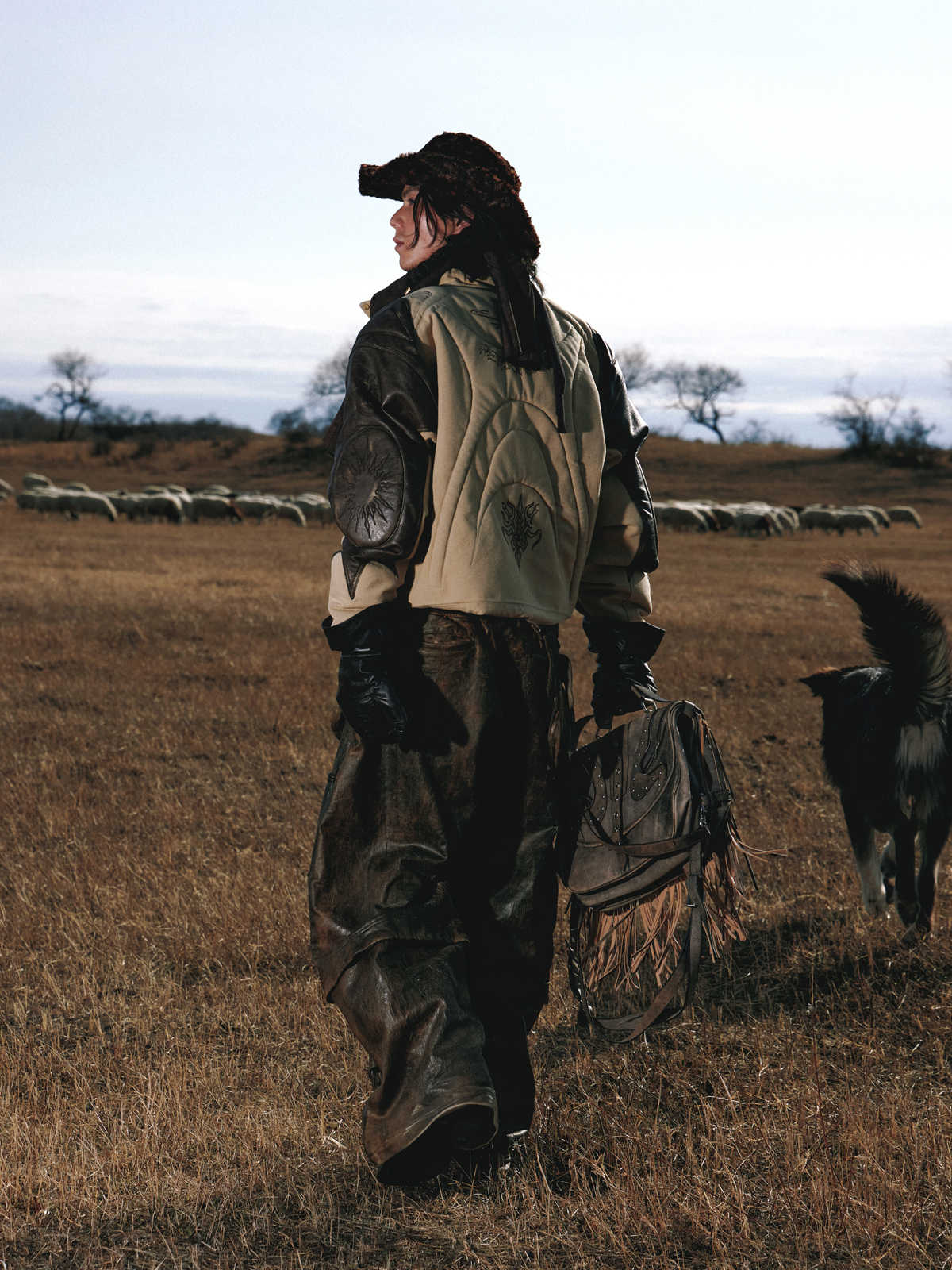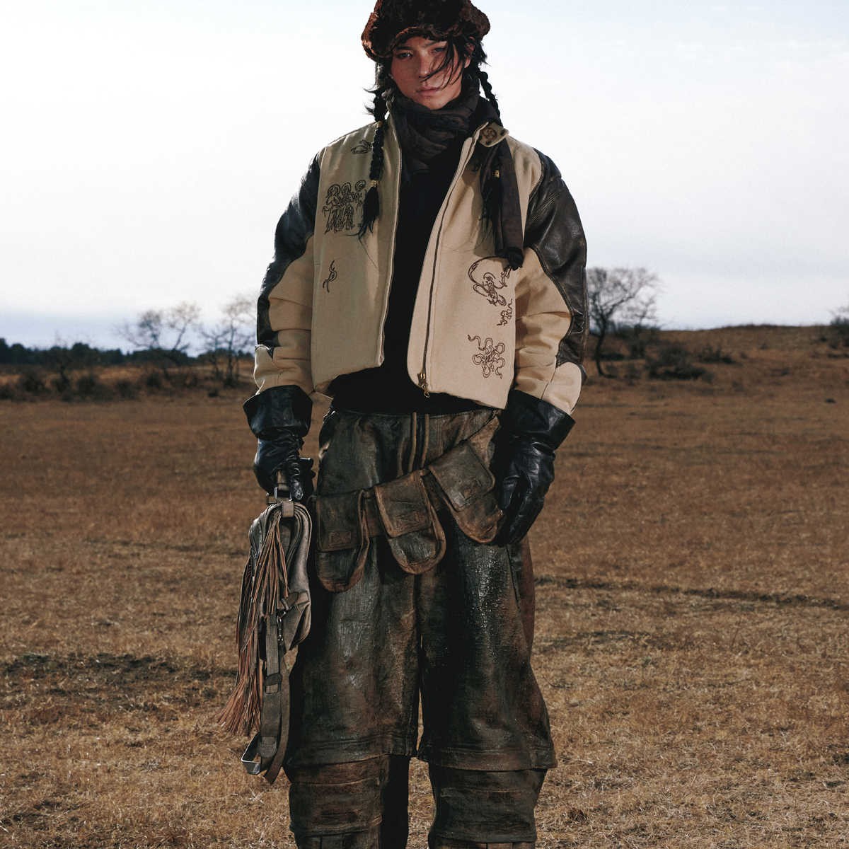 Totem-inspired Leather & Cotton Patchwork Jacket