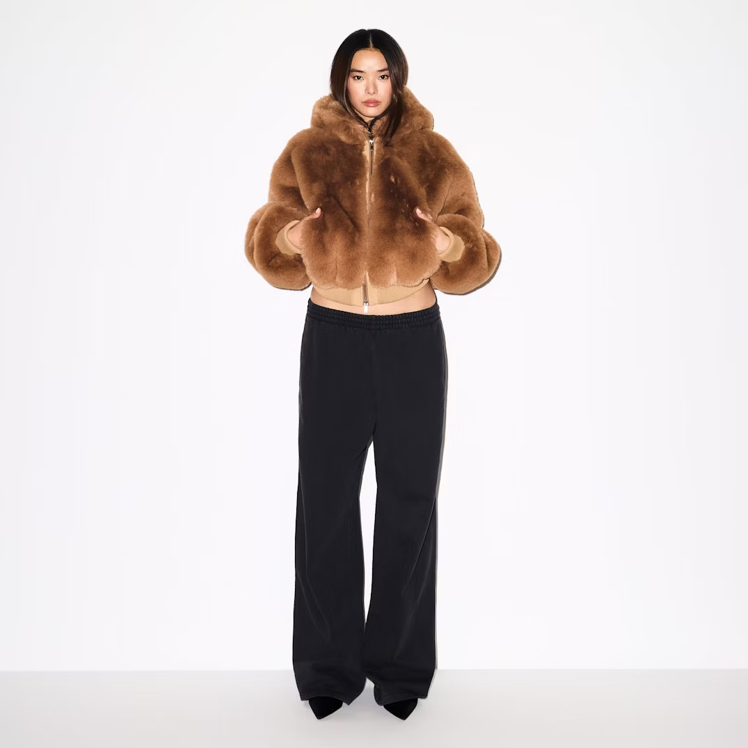 Hooded Warm Fleece Eco-Friendly Faux Fur Jacket With Zipper
